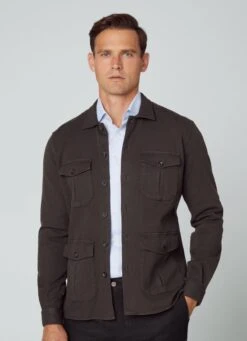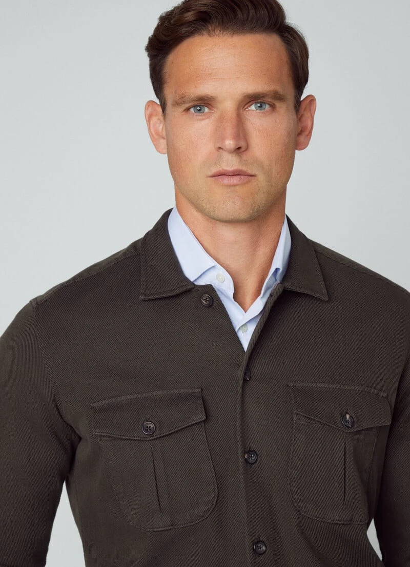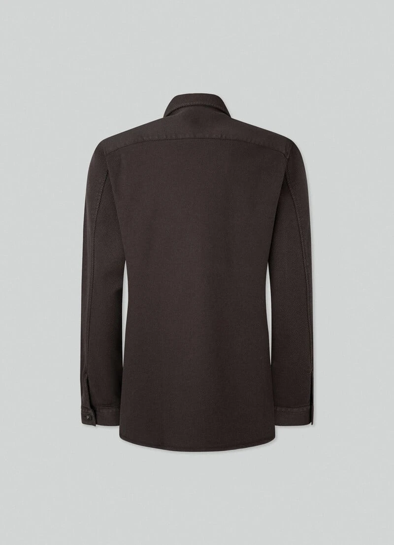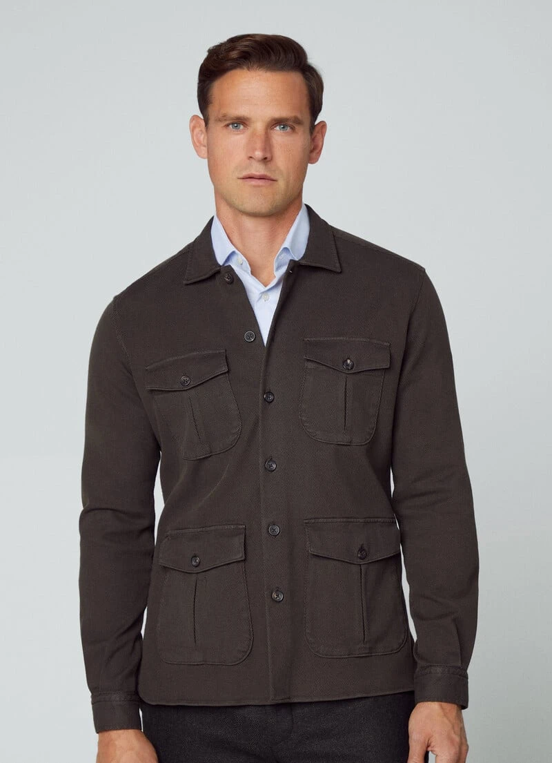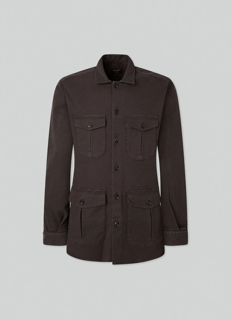 In a cotton twill fabric, this overshirt is the ideal choice to use as a mid layer this winter season. Dyed using the garment dye technique, this garment stands out due to the multiple patch pockets with flaps on the front and its cut below the waist.