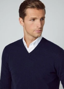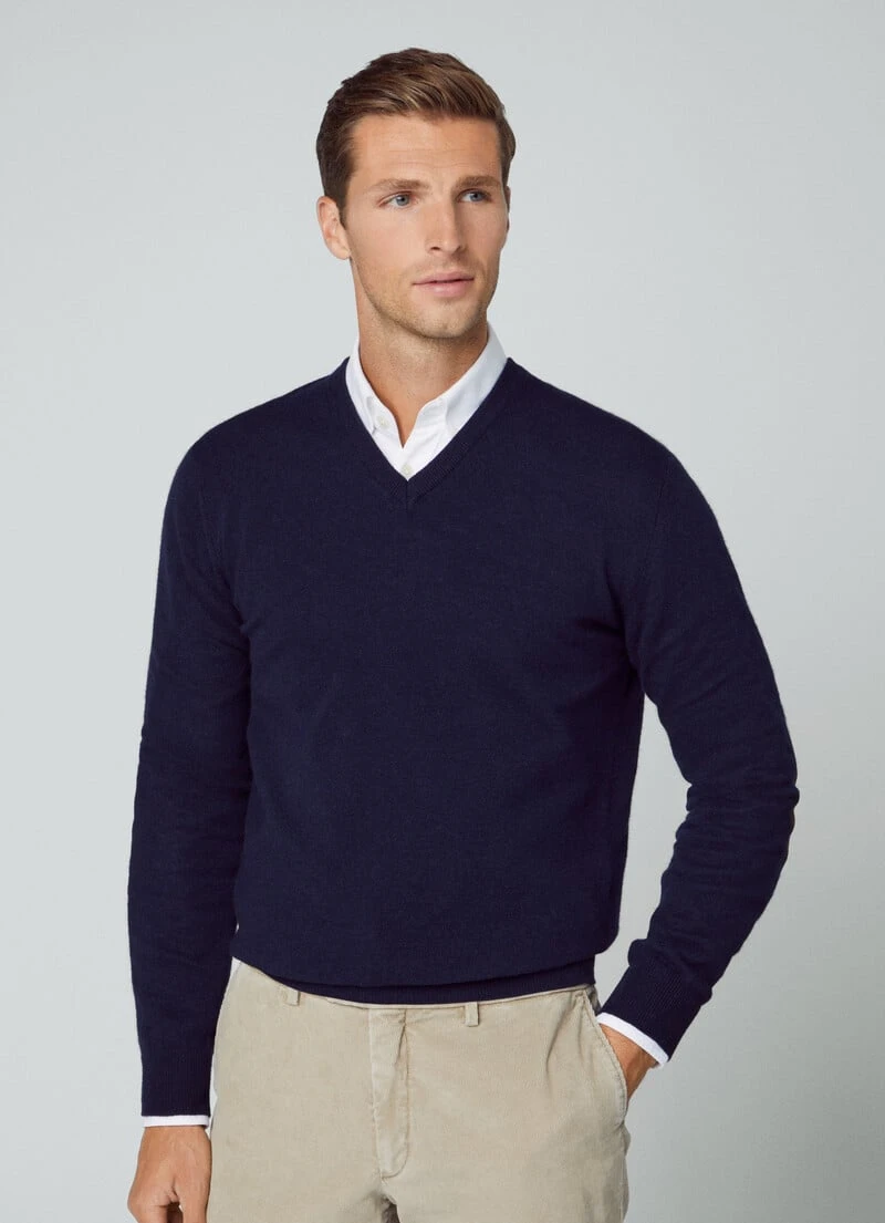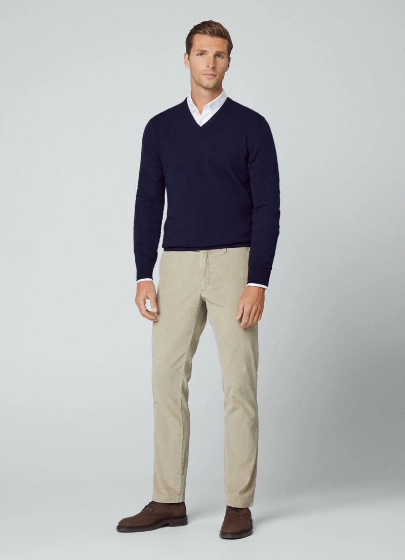 Crafted in a blend of lightweight, flowing materials including wool and cashmere, this v-neck jumper features eye-catching elbow patches in a soft, suede-like material. Combine this jumper with a pair of chinos from our latest collection.