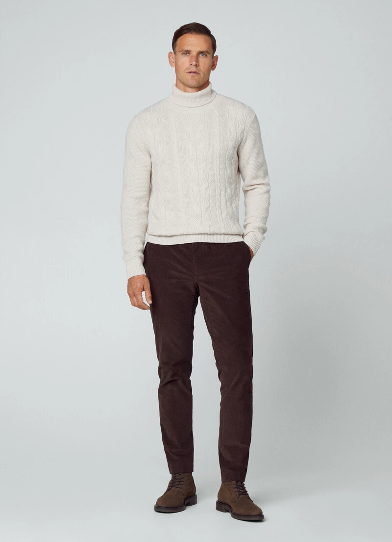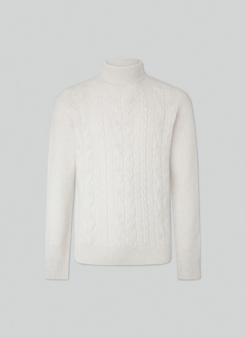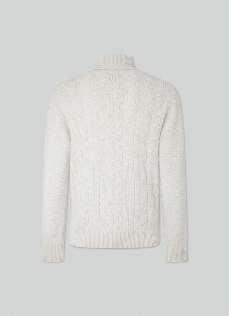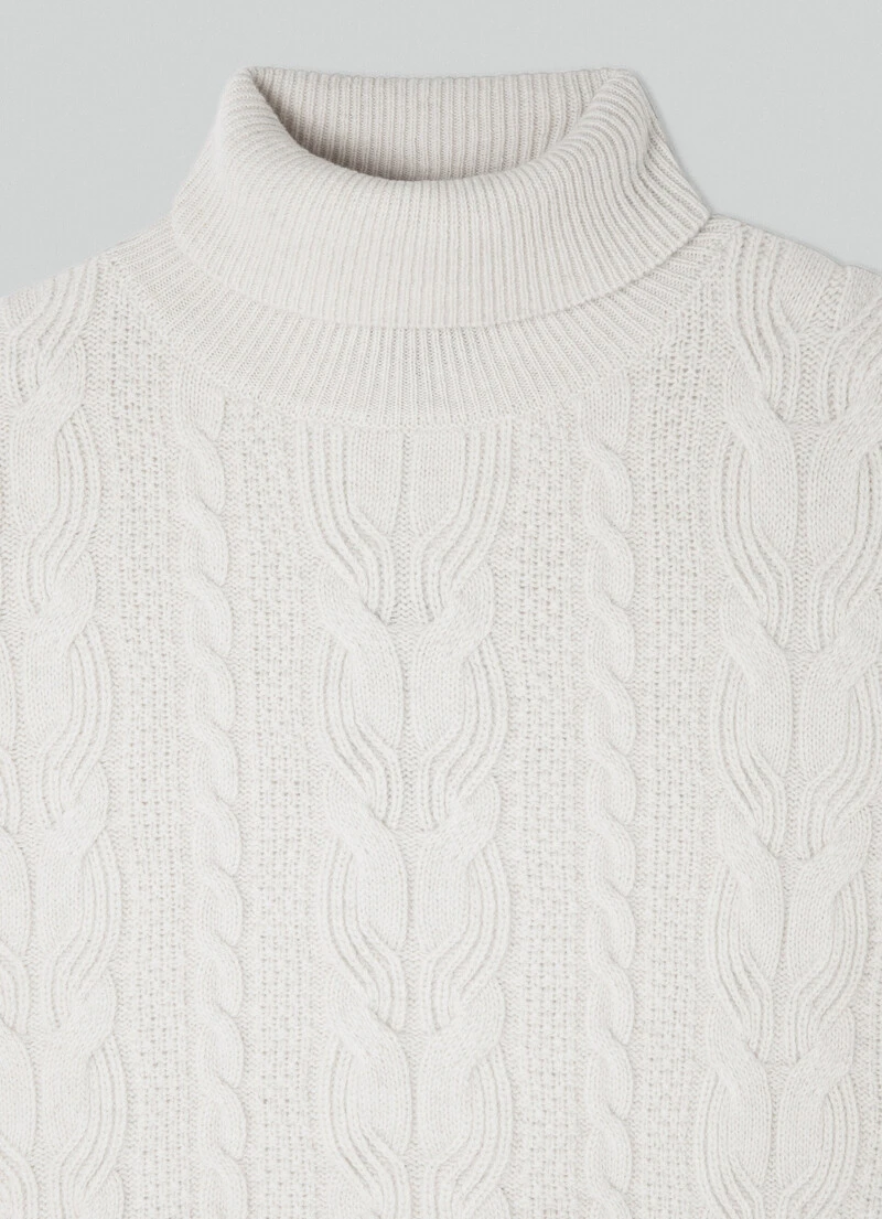 This turtleneck is the perfect mid layer for the upcoming winter season. Crafted in a fine blend of merino wool and cashmere, this garment features a cable knit fabric and ribbed details at the neckline, cuffs and hem to help keep you warm.