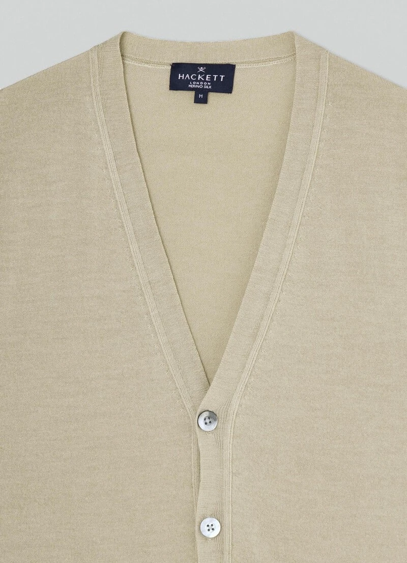 This cardigan knit is an elegant and versatile garment made in a blend of merino wool and silk that gives it its soft feel and lightness. The button-down closure and slim profile make it the ideal accessory for layering and adding a stylish look to any outfit.